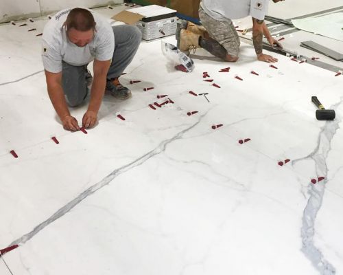 Die Verlegung des Materials ist mit das wichtigste für eine perfektes und langlebiges Gesamtergebnis, für unsere speziellen Verlege materialien und insbesondere unsere patentierte High-Tech Fuge, bieten wir spezielle Schulungen für Verleger an, damit die patentierten Eigenschaften der High-Tech Fuge und unserer Verlege materialien erreicht und langfristig erhalten bleiben.