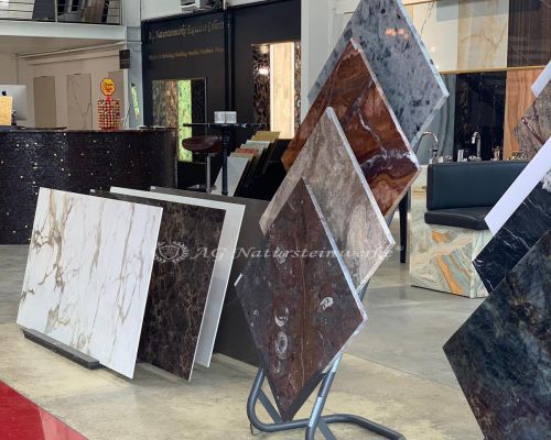- Optimal-Bedingungen in unserer Ausstellung: Die AG Natursteinwerke stellt die verschiedenen Natursteinsorten und High-Tech Feinsteinzeugfliesen in Großformaten für Sie bereit. Durch vergleichendes Auslegen können Sie zuverlässig bestimmen, welche Steine Ihren individuellen Bedürfnissen und Vorstellungen am besten entsprechen.